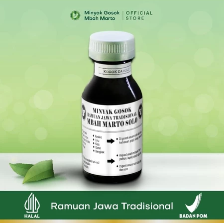Minyak Gosok Mbah Marto Solo merupakan minyak tradisional warisan leluhur sejak tahun 1960, diformulasikan dari bahan alami seperti daun, bunga, buah, batang, dan akar dari tanaman Indonesia. Dikenal efektif untuk membantu meredakan berbagai masalah kesehatan keluarga Anda. (BIsa Untuk kerokan/kerikan)